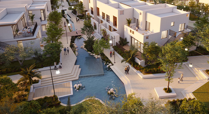 Traditional and international design and architectural concepts have been combined together throughout the project to reflect a mix of Arabic heritage and modern lifestyles, aside from elements as wind towers and residences that reflect Emirati, Arabic and Andalusian characteristics. This beautifully landscaped development is a secure, gated community that also includes a recreation centre and several facilities such as play areas for children, swimming pools and a jogging track throughout the complex.